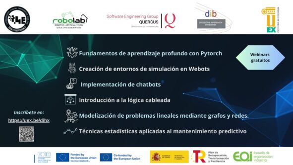 Temáticas: Inteligencia Artificial con PyTorch, Chatbots, Simulación en Webots, Lógica cableada, Grafos y Redes, Mantenimiento predictivo.