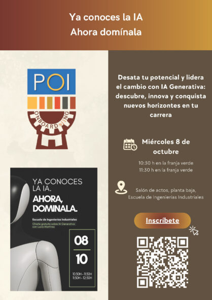 Miércoles 8 de octubre charla sobre IA generativa con Lucía Martínez en el salón actos de la Escuela de Ingenierías Industriales.