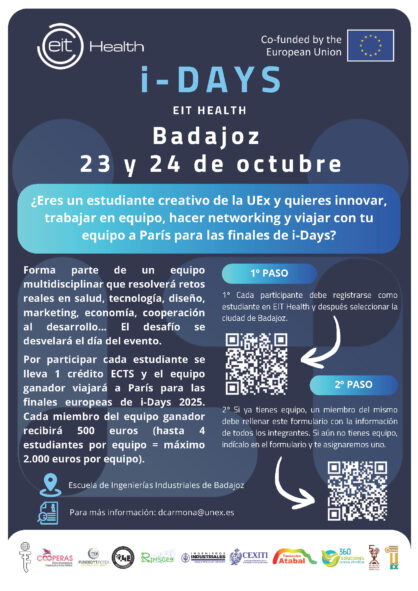 - Regístrate como estudiante en EIT Health y selecciona la ciudad de Badajoz: https://eithealth.eu/programmes/i-days/