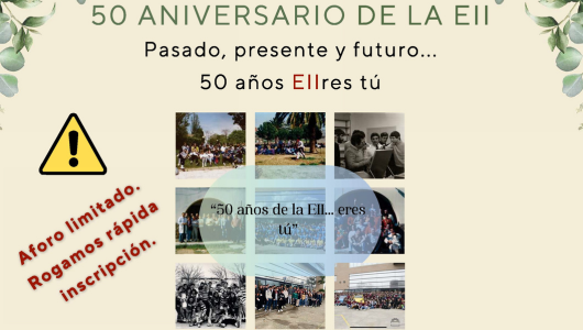 Aprovechamos para recordarte que, si aún no lo has hecho, te inscribas e invites a inscribirse a compañEIIr@s en la base de datos del 50 EII en el enlace https://forms.gle/4kxj37p9yshEh2Fm8, puesto que solo a los inscritos les llegará información e invitación para futuros actos que se vayan desarrollando en la línea de continuidad que, tras el 50 aniversario, algunos de ellos tendrán: